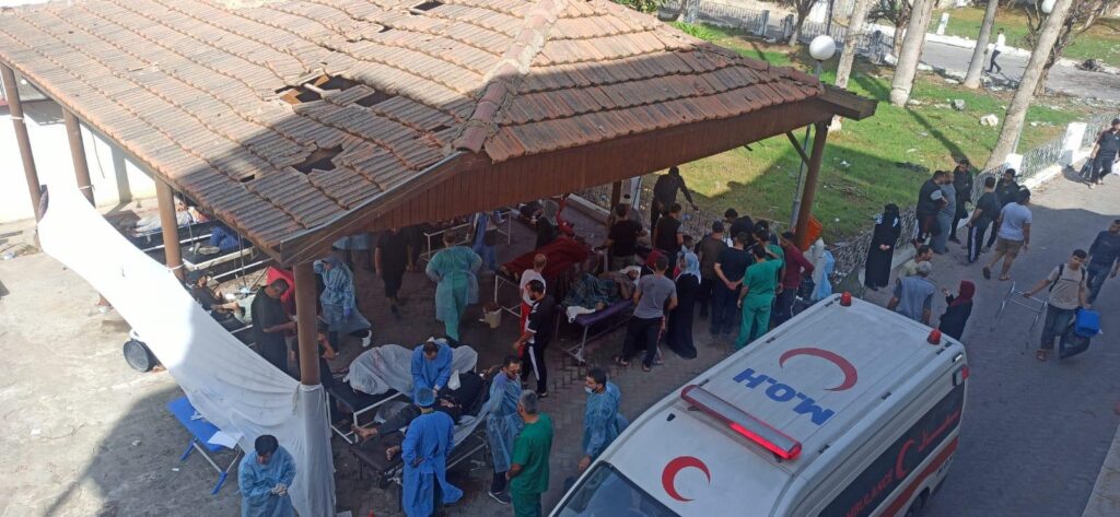 The hospital remains open, caring for the injured.