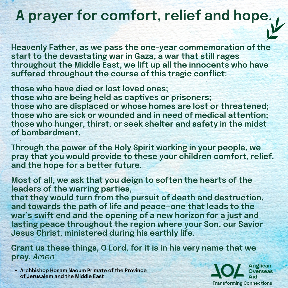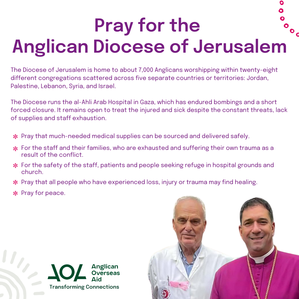 Currently, the Diocese of Jerusalem and its al-Ahli Arab Hospital in Gaza are confronting significant challenges and desperately need our prayers and support.